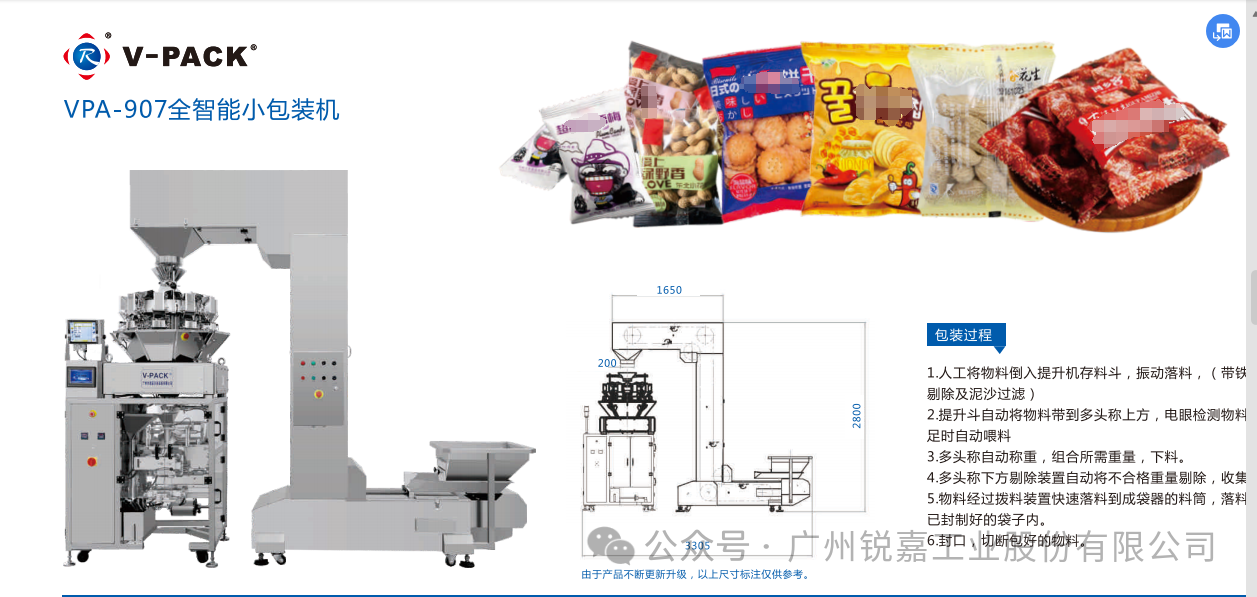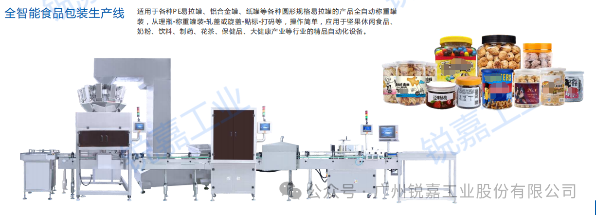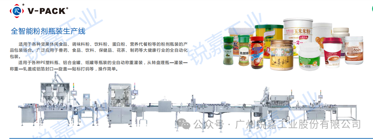 锐嘉工业在食品机械领域深耕多年,积累了深厚的技术底蕴与丰富的行业经验。此次展会,我们将带来一系列先进产品:高精度的智能粉剂/颗粒瓶装包装生产线,可实现精准定量包装,误差极小,有效避免物料浪费,提升生产效益;高速高效的液体包装设备,针对不同粘度的液体,都能完成快速、稳定的包装操作;还有集多种功能于一体的自动化包装生产线,从物料输送、计量、包装到码垛,全流程自动化运行,大大节省人力成本,提高生产效率 。